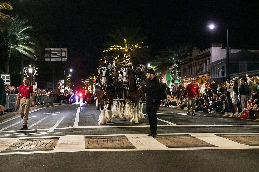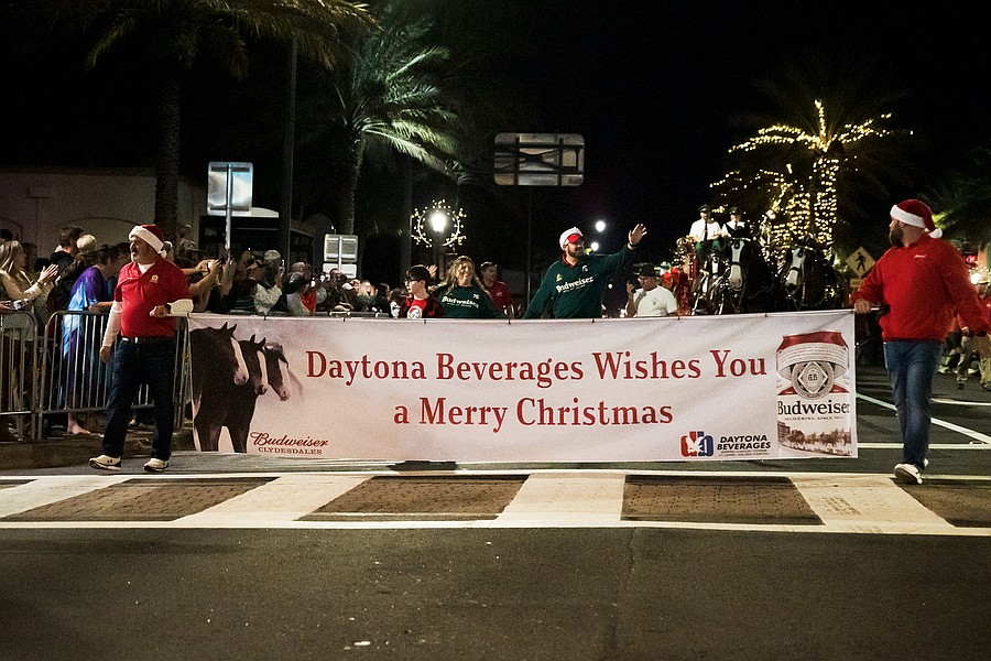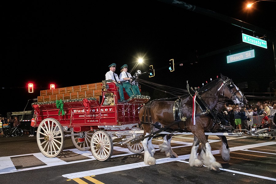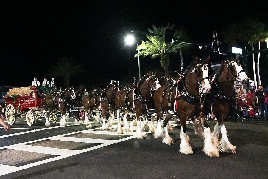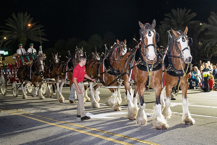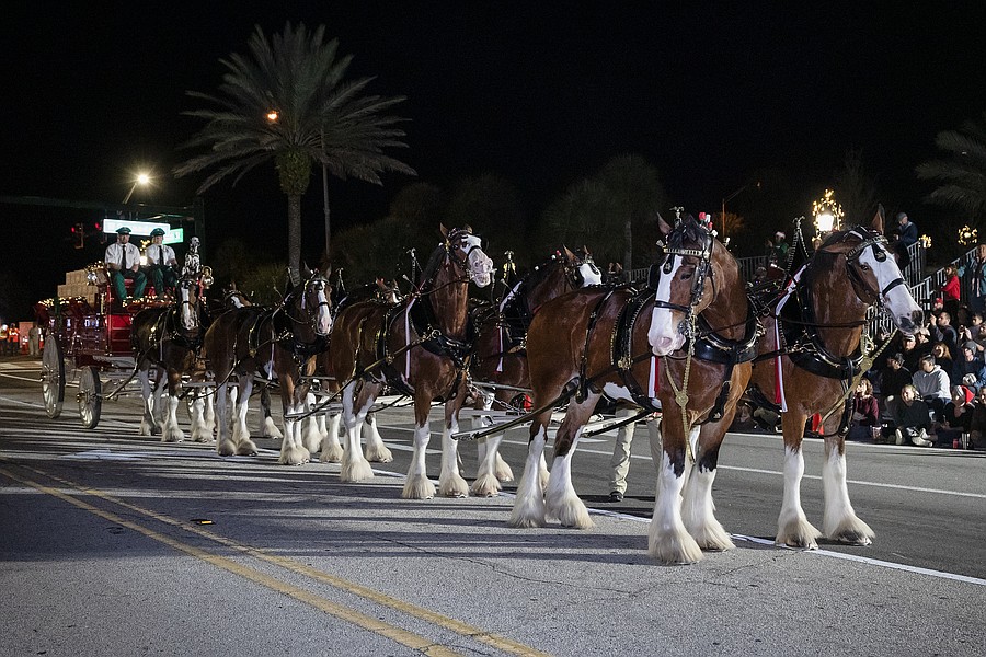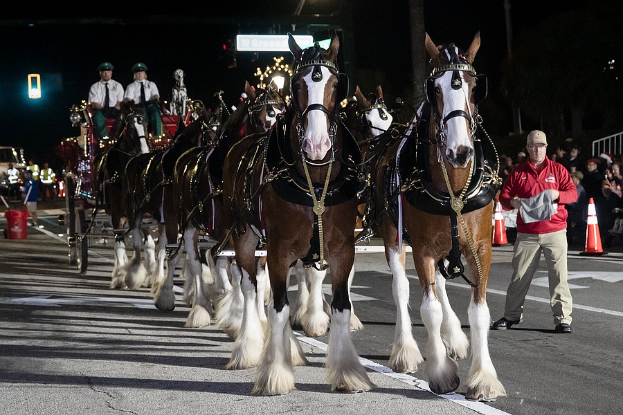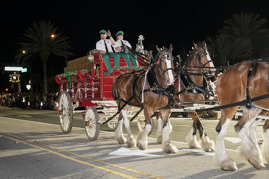 The Bowler Family, owner of Daytona Beverage, presents the famous Budweiser Clydesdales at the 34th annual HOme for the HOlidays parade on Saturday, Dec. 13. Photo by Michele Meyers