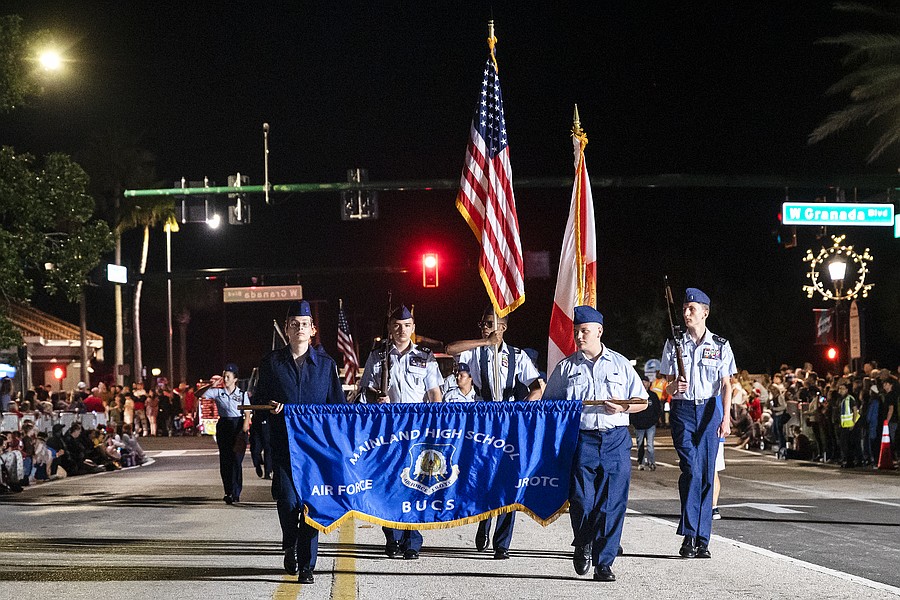 The Mainland Air Force JROTC marches in the 34th annual HOme for the HOlidays parade on Saturday, Dec. 13. Photo by Michele Meyers