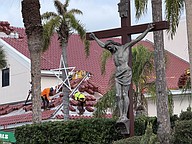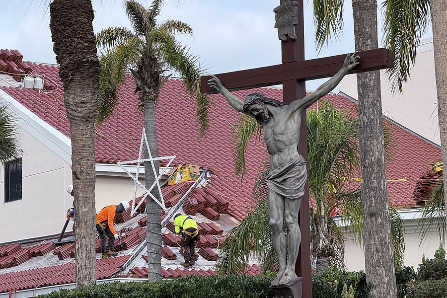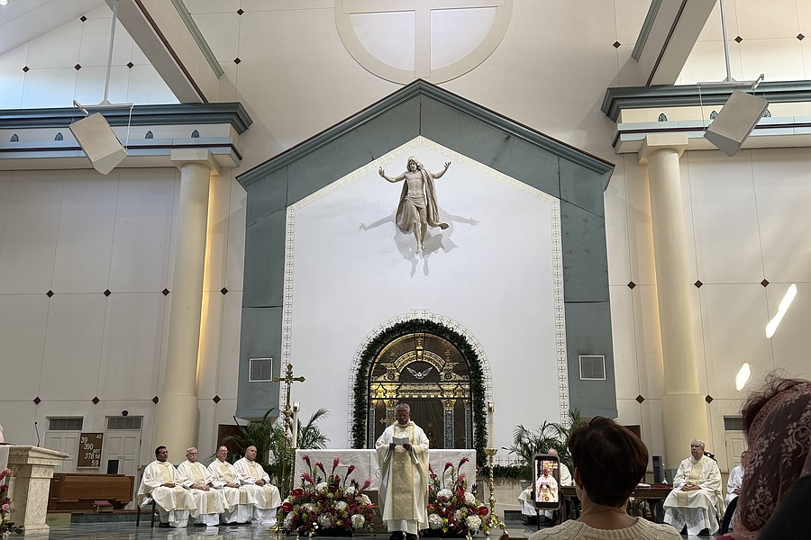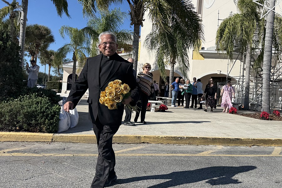 Over 1,100 people attended the noon Mass, on Dec. 17, at the church at 4600 Belle Terre Parkway, Palm Coast. Sunlight began to filter through the stained glass windows, depicting saints, high on the walls. A larger-than-life statue of the resurrected Jesus, arms outstretched, is suspended about 20 feet above the ornate altar.