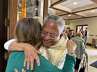 After his own remarks, Father Jose was back to his parishioners, one on one, shaking hands and embracing them — Father Jose, the diminutive man with a broad toothy smile, the leader and writer with decades of education and leadership experience in India as well as the United States, who is seemingly able to make time for everyone.