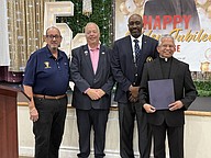 Ramon Marrero, Greg Gully, Joseph Paul and Father Jose Panthaplamthottiyil. Photo by Brian McMillan