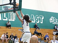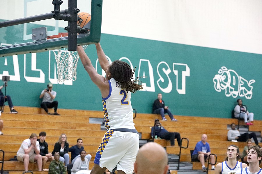 Mainland's Canyon Powers goes up for a dunk against Tampa Sickles on Dec. 22 in the Bulldog Classic at Flagler Palm Coast. Photo by Brent Woronoff