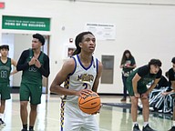 Mainland's Canyon Powers at the free throw line against Sickles. Photo by Brent Woronoff