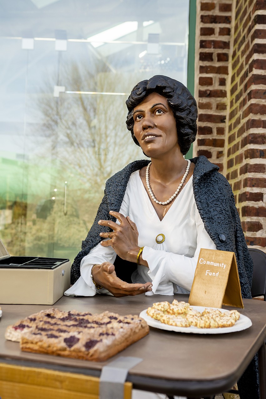 sculptures designed to make you stop and look, to smile, and to feel an immediate connection. They are so realistic that you’ll want to buy something at the 'Bake Sale' in Granada Plaza or tip the fiddler in Bailey Riverbridge Gardens."