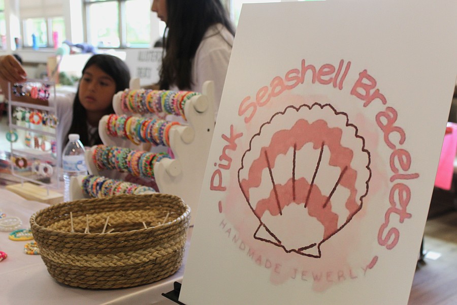 Products such as handmade jewelry, baked goods, flowers, original seashell artwork were displayed for purchased, along with vendors offering services like car detailing.