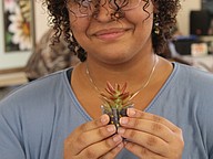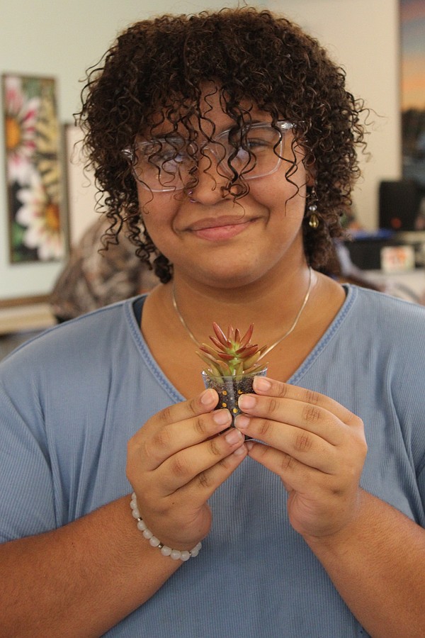 Alaysia Araujo-Campbell holds a plant she got from a vendor. Photo by Hannah Hodge