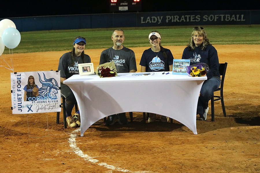 Fogel plays shortstop for the Pirates, who lost their first game of the season, 10-6 to Palatka, before the signing celebration. Her sister, Ruby, plays third base. Their family moved to Palm Coast from Freehold, New Jersey, before last school year.