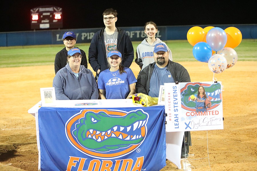 “I’m glad we did this,” said Fogel who will play softball for St. Johns River State College in Palatka next season. Pitcher Leah Stevens, who signed with the University of Florida, decorated a cake that read “Congratulations” and had pictures of the school logos — a Viking for St. Johns River and the Gator logo for Florida.