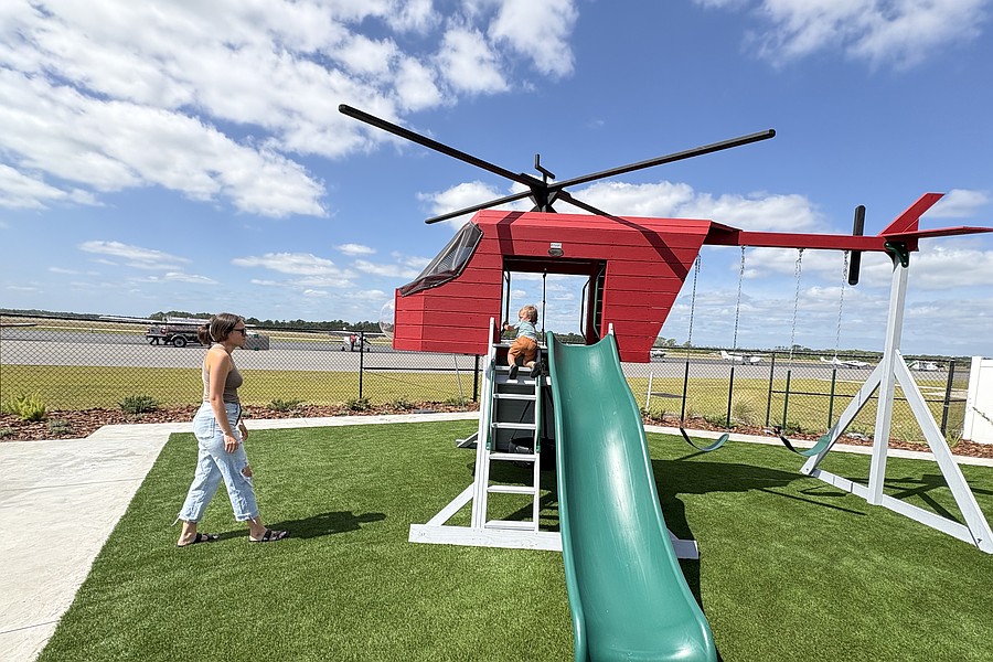 The children's playground at the Landing Strip has a new helipad and slide. Photo by April Koehler