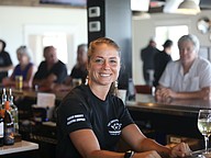 The Landing Strip Tavern's manager and bartender Rachel Arrington serves customers as the restaurant officially opens for business after the grand re-opening on Thursday, May 1. Photo by Brent Woronoff