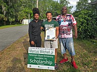 Marcus Mitchell (center) receives a plaque and $1,000 scholarship from the Nehemiah Gilyard Scholarship Foundation. Mitchell is flanked by Nehemiah's brother Elijah Gilyard and father Sim Gilyard. Courtesy photo