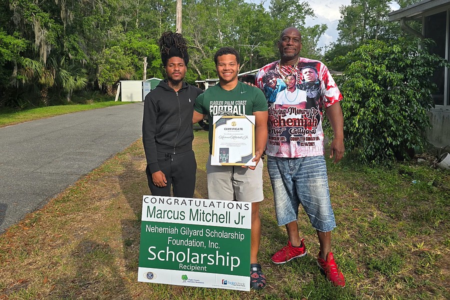 Flagler Palm Coast High School athletes Mariah Mills and Marcus Mitchell each received a $1,000 scholarship from the Nehemiah Gilyard Scholarship Foundation.