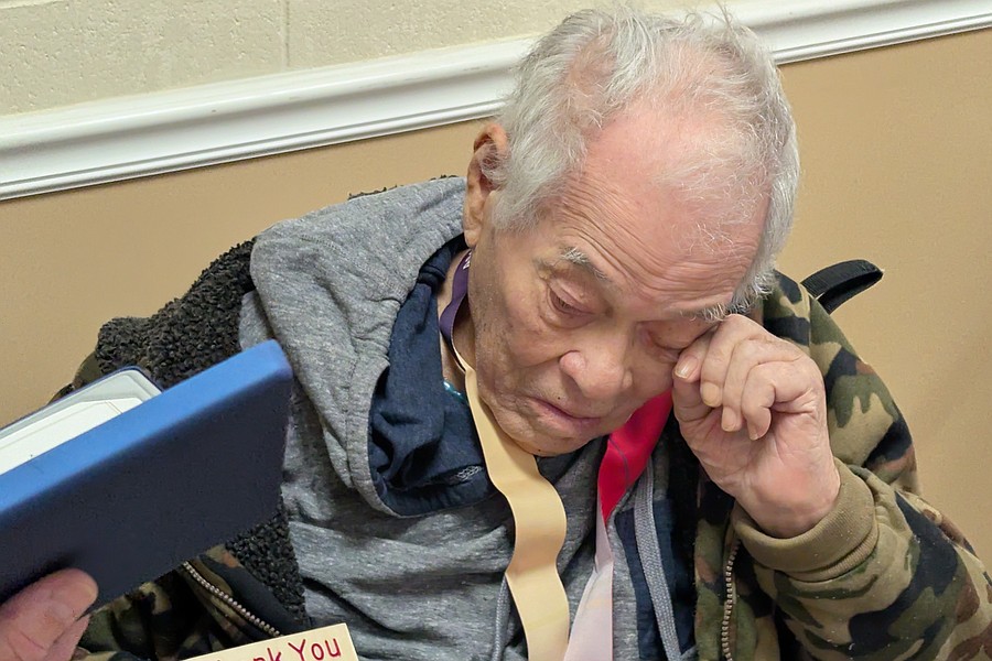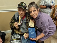 Cordero handed the medal to Arce and tears came to Arce’s eyes. Arce would not have been able to travel to receive the medal because he is ill and currently on dialysis, his daughter, Ivey (pronounced Evie) Rodriguez said.