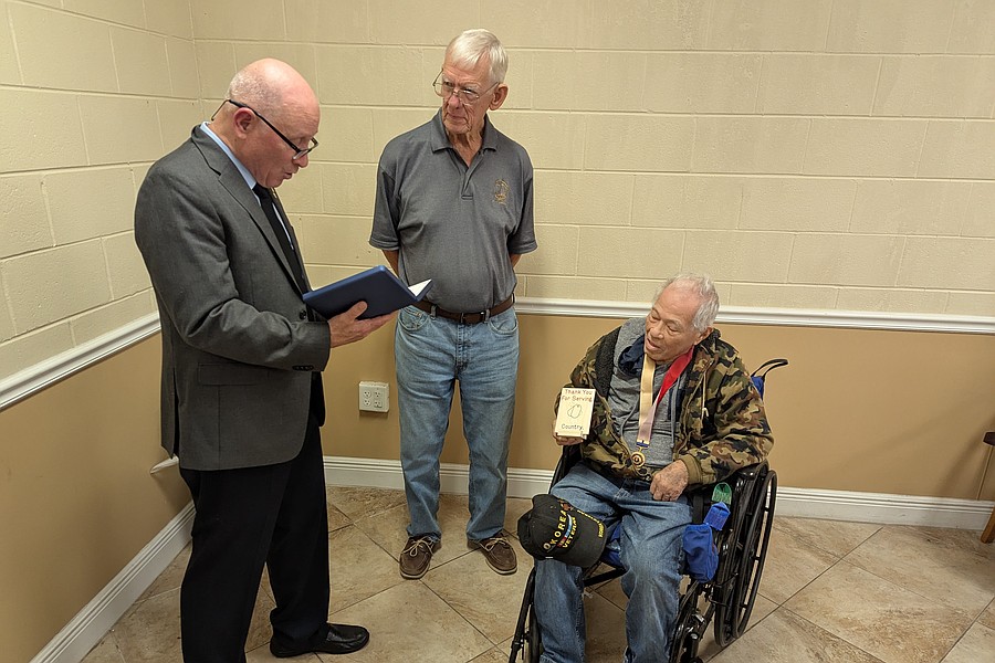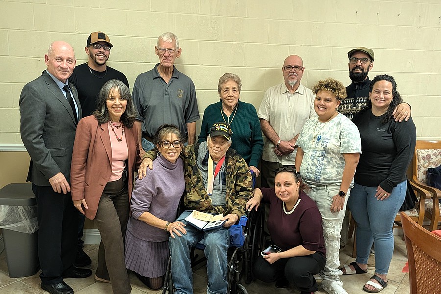 Luciano Arce Diaz received his on Monday, Nov. 3, at the Flagler Rehabilitation and Nursing Center in Bunnell. Arce, who recently celebrated his 93rd birthday, received the medal in front of family and friends in a ceremony led by Army veteran Angel Cordeo.