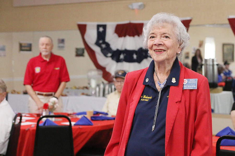 Air Force veteran Gloria Makowski stands for recognition during Ormond Beach's Veterans Day Celebration on Thursday, Nov. 6. Photo by Jarleene Almenas