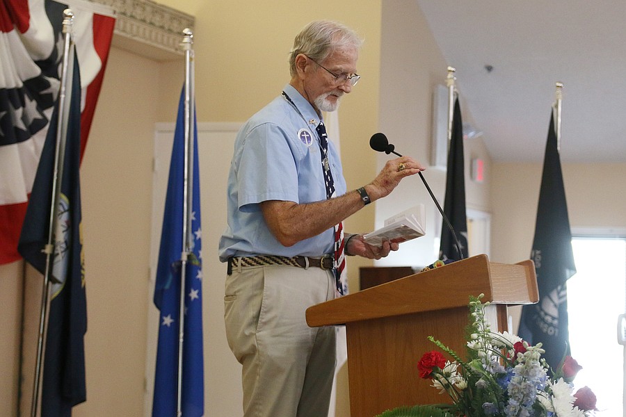Chaplain Terry Moné, an Air Force veteran, delivers the invocation during Ormond Beach's Veterans Day Celebration on Thursday, Nov. 6. Photo by Jarleene Almenas