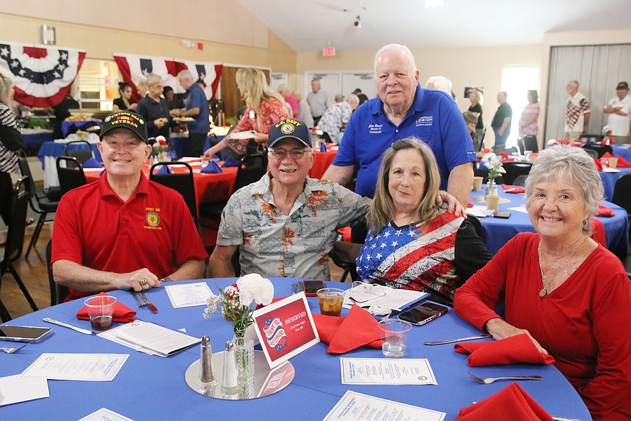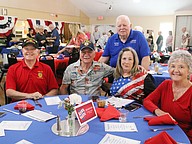 Larry Scovotto, Larry Hildebrandt, Debby Hildebrandt, Linda Scovotto and Jim Bowers (back) enjoy Ormond Beach's Veterans Day Celebration on Thursday, Nov. 6. Photo by Jarleene Almenas