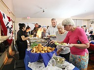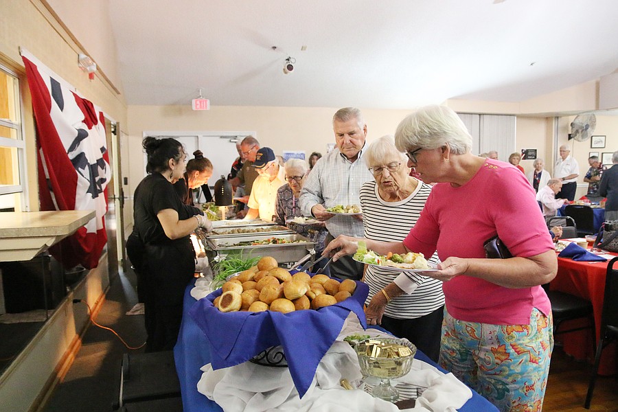 People go through the lunch buffet line during Ormond Beach's Veterans Day Celebration on Thursday, Nov. 6. Photo by Jarleene Almenas