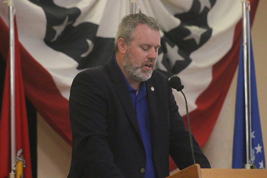 Ormond Beach Mayor Jason Leslie speaks during Ormond Beach's Veterans Day Celebration on Thursday, Nov. 6. Photo by Jarleene Almenas