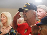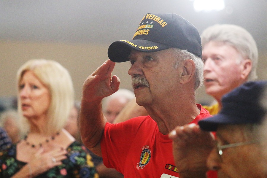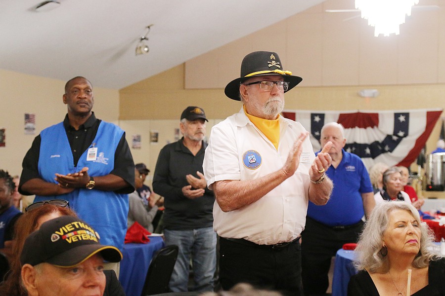 A Vietnam Veteran of America Chapter 1048 member stands for recognition during Ormond Beach's Veterans Day Celebration on Thursday, Nov. 6. Photo by Jarleene Almenas