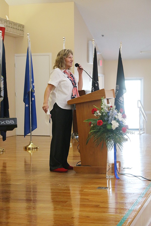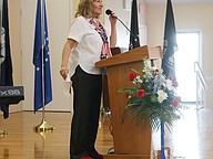 Debbie Kruck-Forrester, founder of Ormond Strong, speaks to veterans during Ormond Beach's Veterans Day Celebration on Thursday, Nov. 6. Photo by Jarleene Almenas