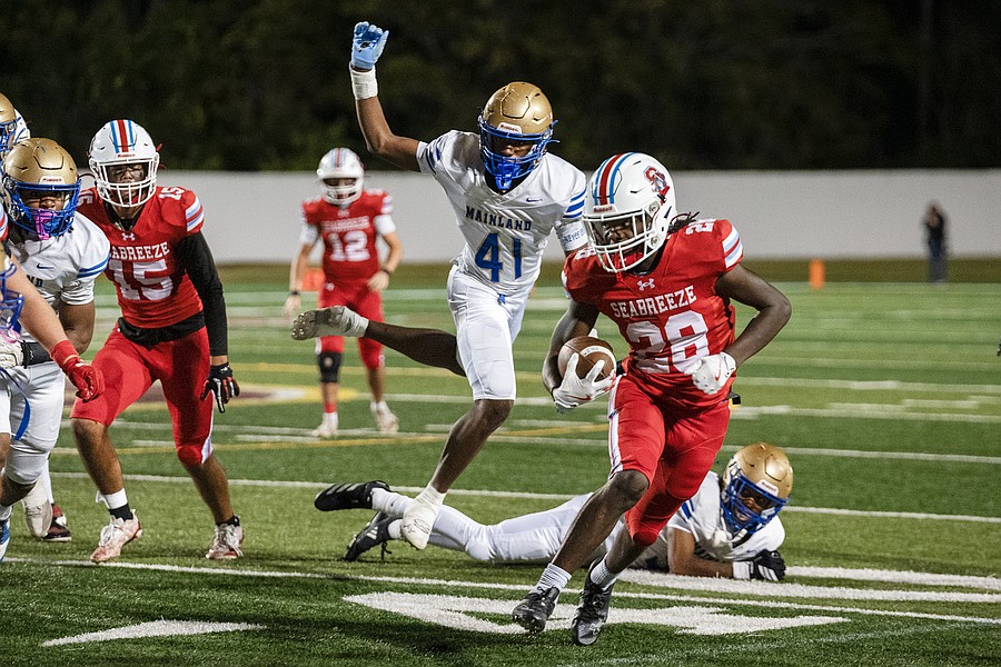 “For 103 years, this game has been played. Now, there have been some years missed, but it’s a 103-year-old rivalry, one of the best rivalries in the Southeast, and so it’s passion all the way around,” Mainland coach Jerrime “Squatty” Bell said. “You go to a car dealership, they choose one side, we choose the other side. It is what it is. That’s Mainland-Seabreeze.”