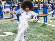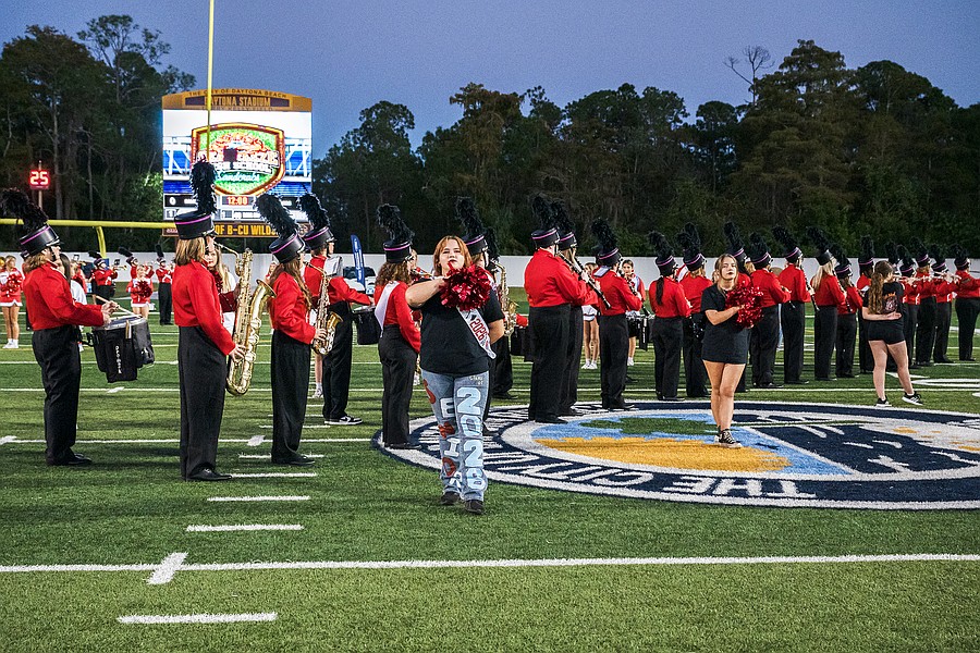 Seabreeze drum major Britton Prewitt directs the band during the rivalry match against Mainland at the Daytona Stadium on Friday, Oct. 31. Photo by Michele Meyers