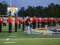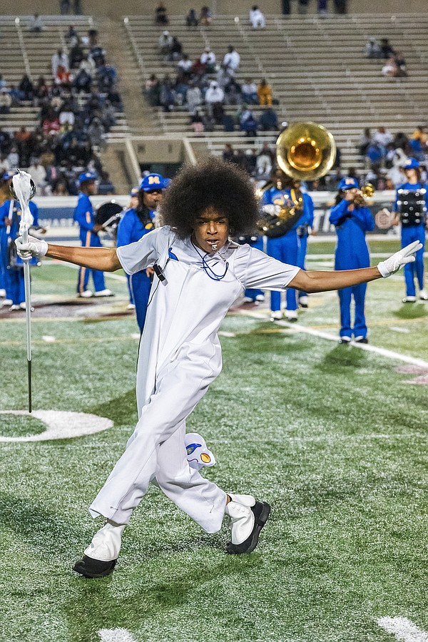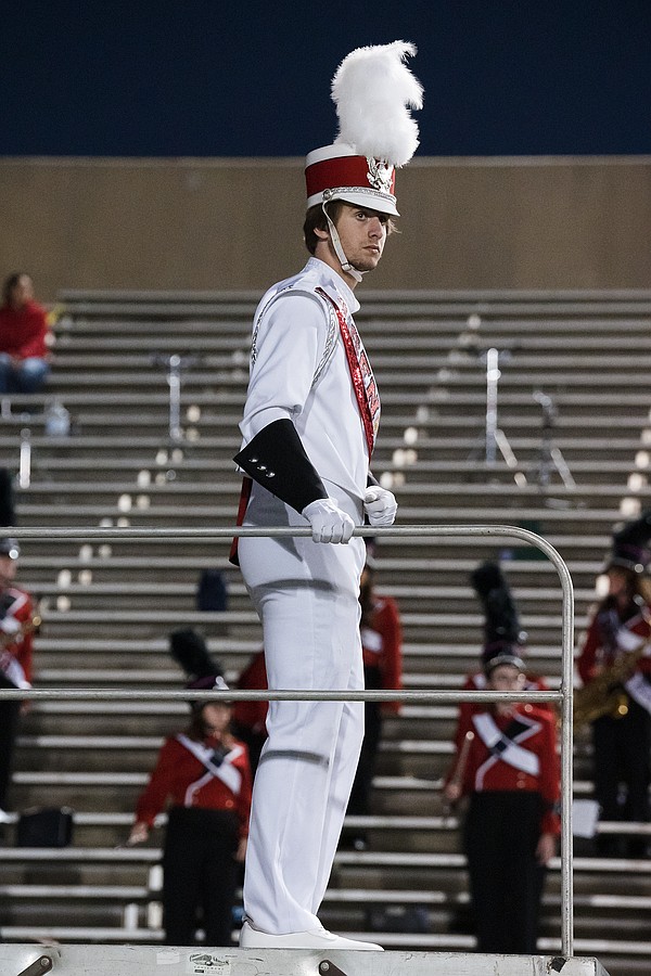 Mainland drum major Trent Riddick helps lead the band during halftime on Friday, Oct. 31 at the Daytona Stadium. Photo by Michele Meyers