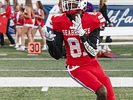 Seabreeze wide receiver Amare Robinson warms up before the rivalry game against Mainland on Friday, Oct. 31 at the Daytona Stadium. Photo by Michele Meyers