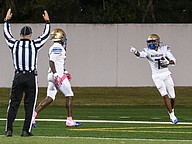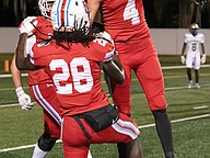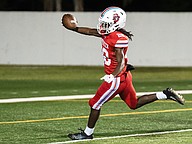 First game touchdown for Mainland's Christian Cooper at the Daytona Stadium on Friday, Oct. 31. Photo by Michele Meyers