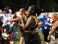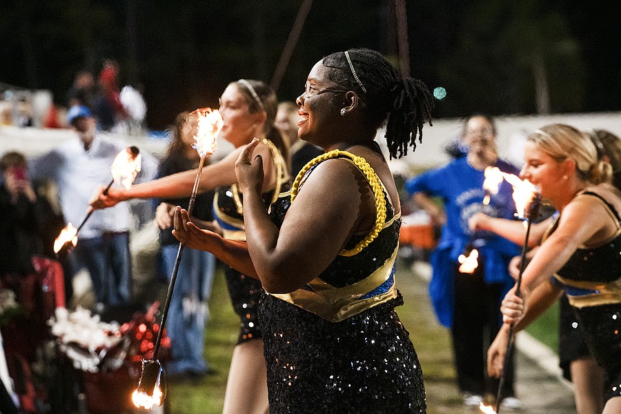 Mainland's majorettes twirl fire batons during halftime at the rivalry game against Seabreeze at the Daytona Stadium on Friday, Oct. 31. Photo by Michele Meyers