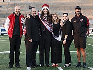 Seabreeze homecoming king Chris Ward (center left) and Amanda Larson (center right) pose with family, principal Tucker Harris (left) and band director Michael Levanti (right) on Senior Night at the Daytona Stadium on Friday, Oct. 31. Photo by Michele Meyers