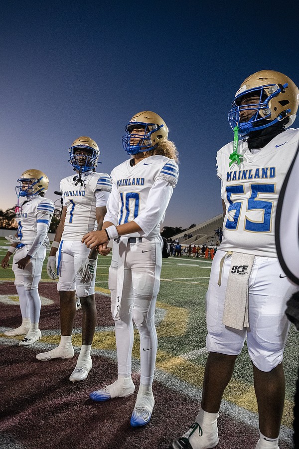 Mainland's Bubba Westbrook gets ready for the rivalry game against Seabreeze at the Daytona Stadium on Friday, Oct. 31. Photo by Michele Meyers