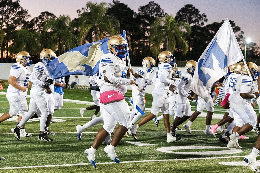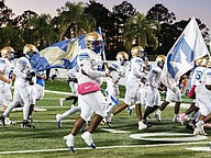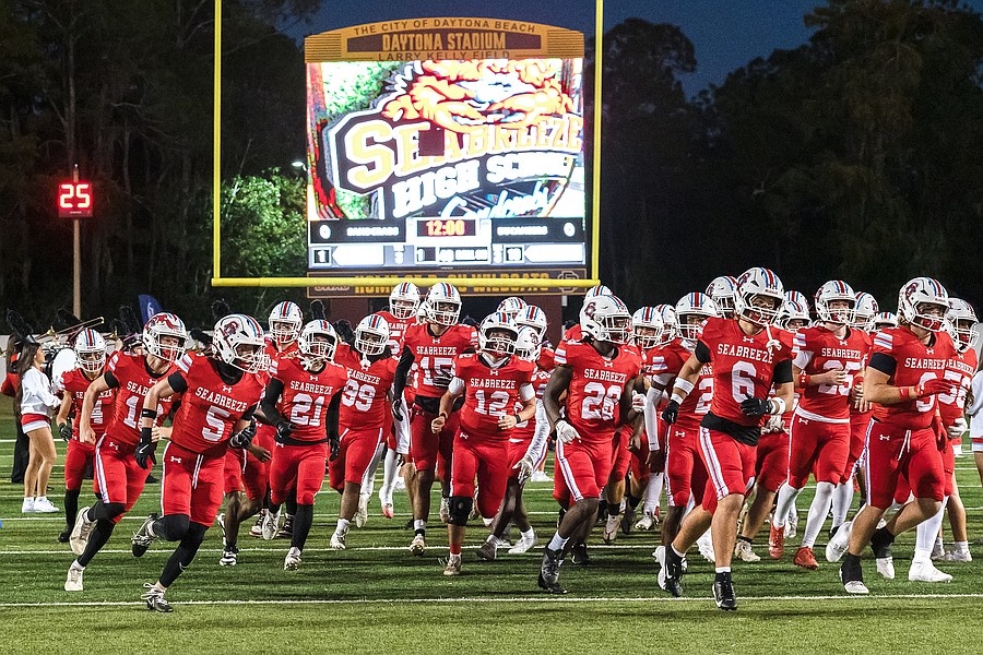 Seabreeze takes the field before the rivalry match against Mainland at the Daytona Stadium on Friday, Oct. 31. Photo by Michele Meyers