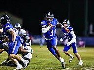 Matanzas running back Wiley Conner tries to break out of a defender's grasp. Photo by Keishia McLendon
