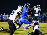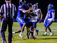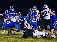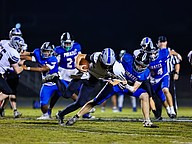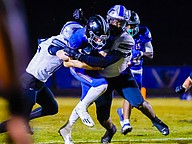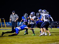 Matanzas' Jack Ferguson (9) and Josh Mills (20) make the tackle. Photo by Keishia McLendon