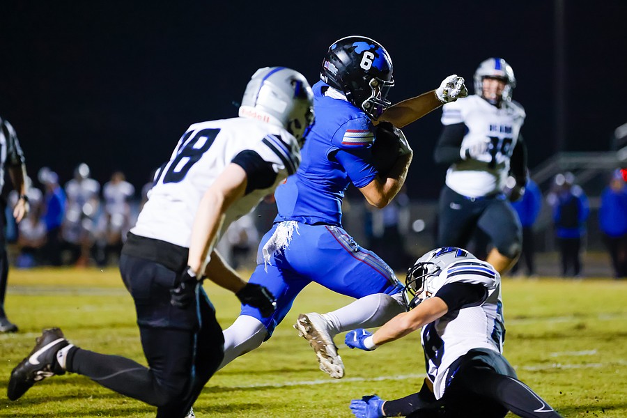 Matanzas receiver Ladarien Baker (3) attempts to break a tackle. Photo by Keishia McLendon