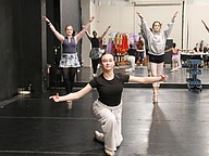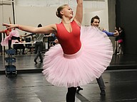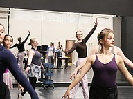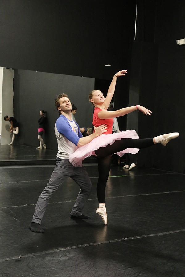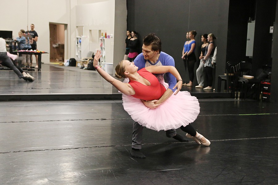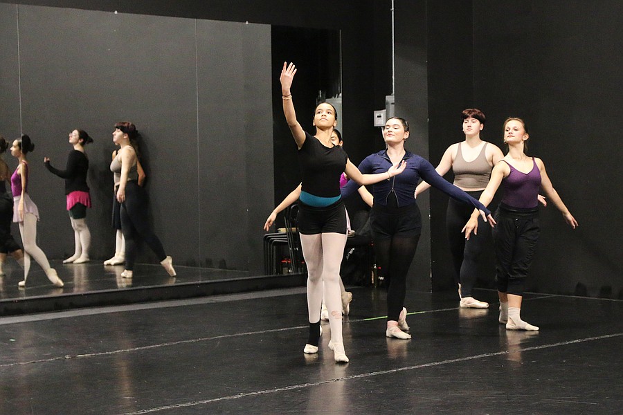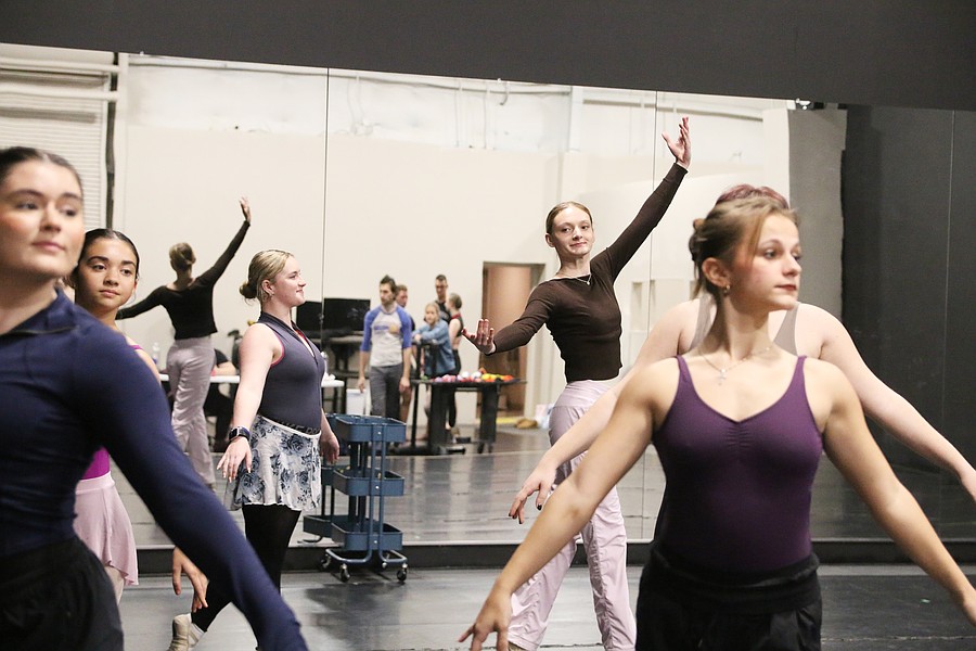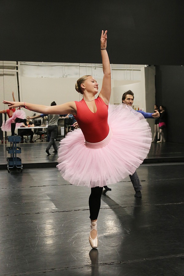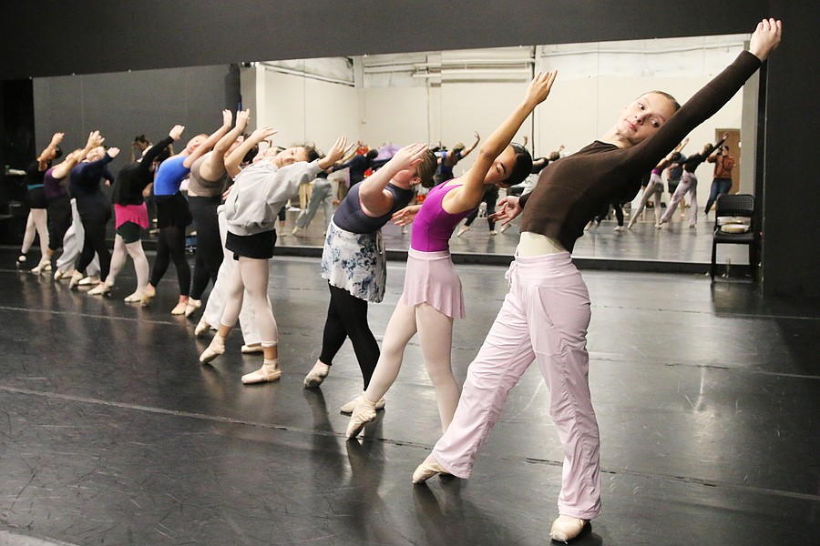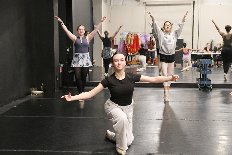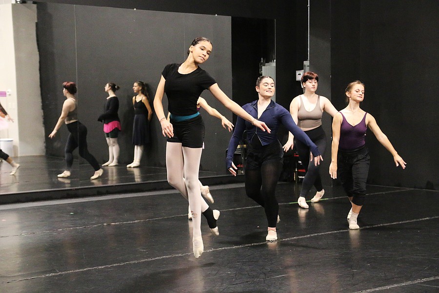 Angelica Butakova, a Snowflakes demi-soloist, rehearses alongside Dallas Kinsley, Mia Esguerra, Summer Euson and Rowan Combs. Photo by Jarleene Almenas