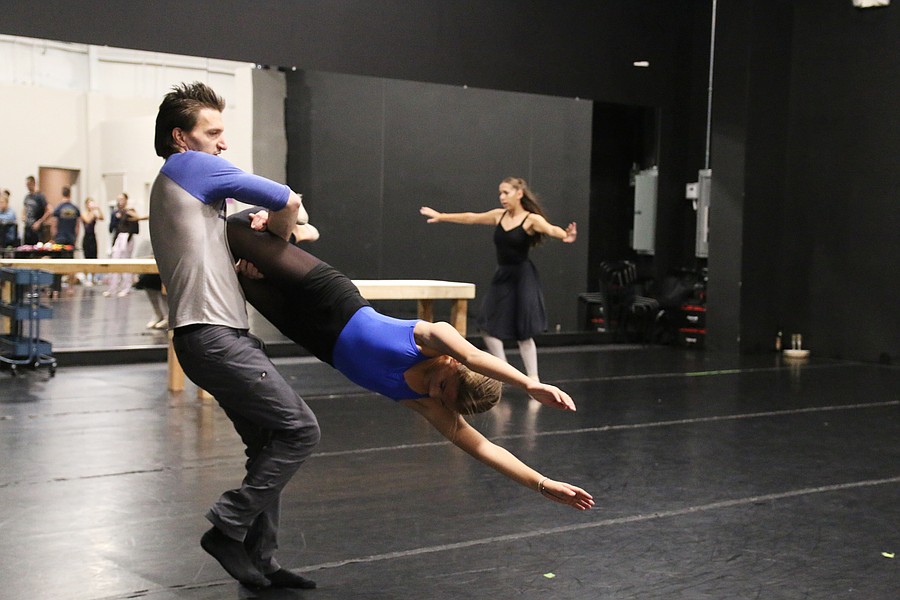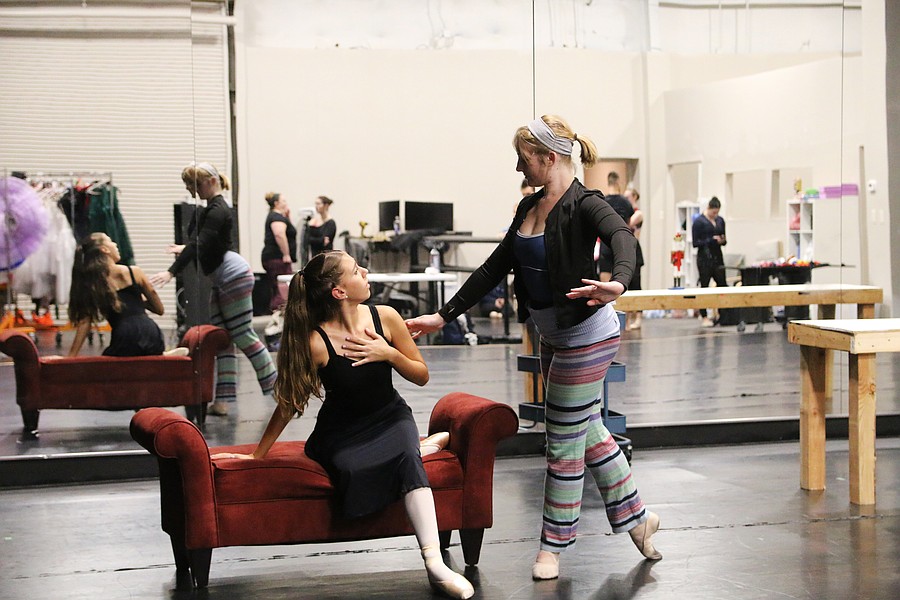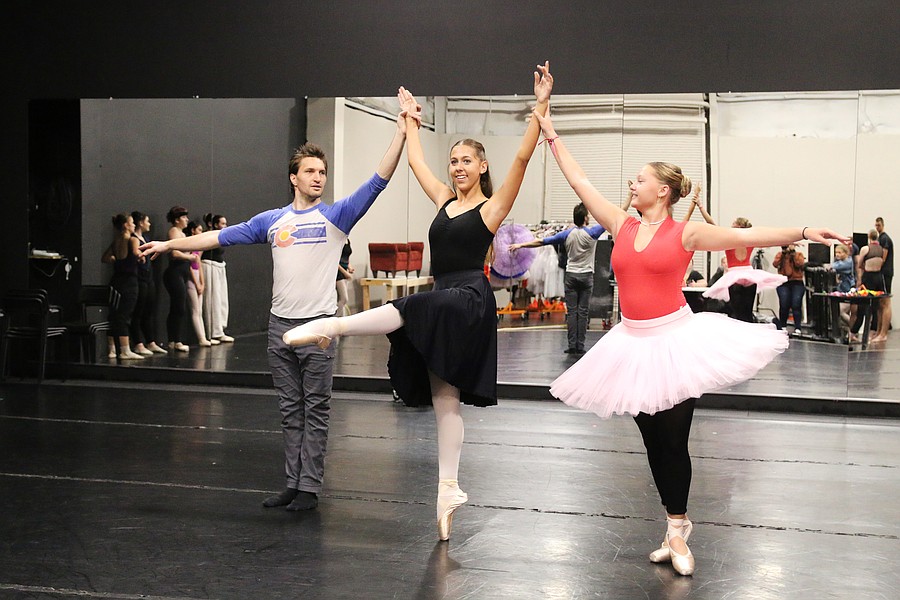 Angelica Butakova, a Snowflakes demi-soloist, rehearses alongside Dallas Kinsley, Summer Euson and Rowan Combs. Photo by Jarleene Almenas