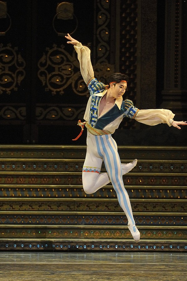 Sung Woo Han in the Neapolitan Dance from Act III of Swan Lake. Photo: Gene Schiavone.