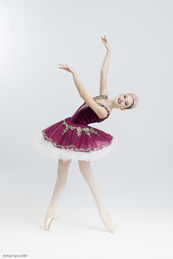 Emery Crooke as Clara, with (left to right) Emma Thomas as Mouse Queen, Gabriella Palmer as Snow Queen and Ralph Medley as Mouse King. Photo courtesy of Michael Cairns