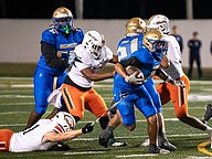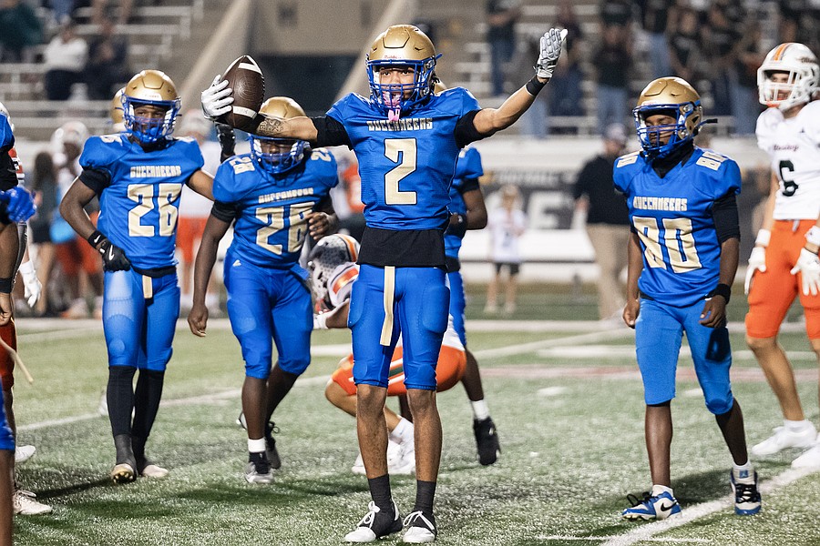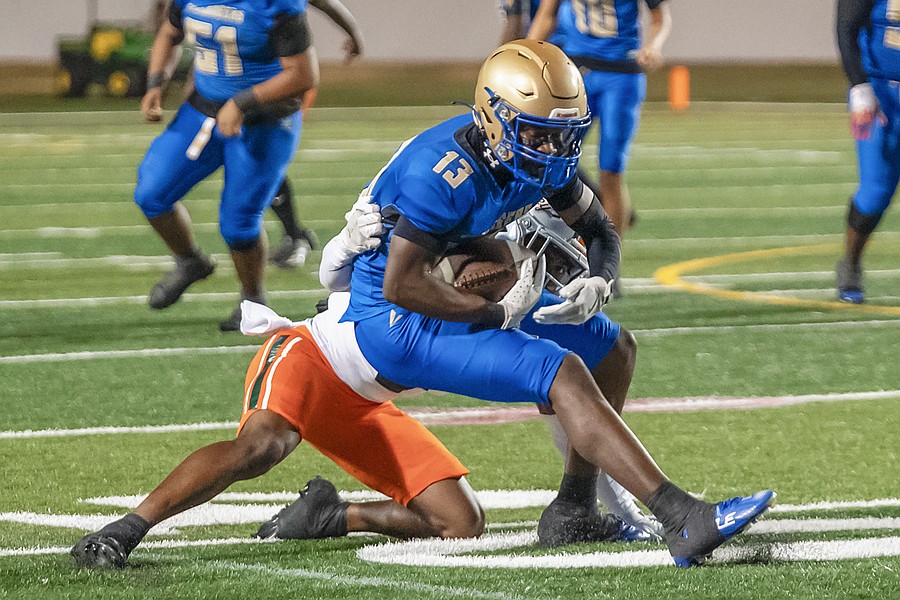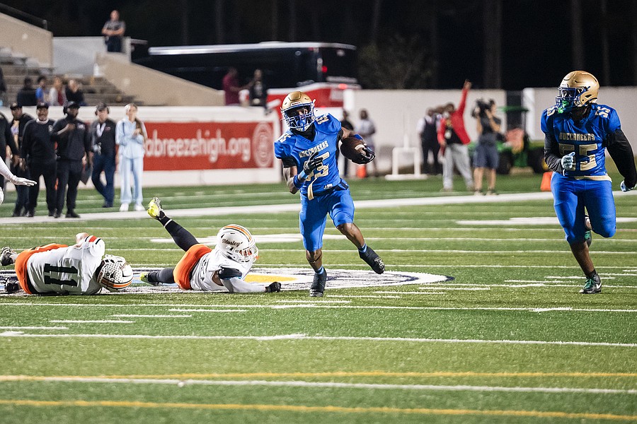 Minutes after Hinson’s touchdown run, running back Braylyn Simmons — who rushed for 181 yards — scored his first of two touchdowns. Mainland wide receiver Kadin Flores then grabbed a pass, broke multiple tackles and switched back for a 32-yard sprint into the end zone, giving the Bucs a 13-7 lead.