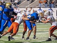 After Mainland went up 36-17 with a 24-yard field goal by David Aponte and Simmons' second touchdown run, Mosley pulled to within five points with two touchdown runs by Sammy Chisholm. But King's interception — the Bucs' fourth of the game — ended the visitors' comeback.