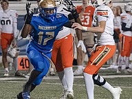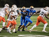 Linebacker Dennis "Tank" King III solidified Mainland's 36-31 win over Mosley with an interception at the end of the Region 1-5A semifinal on Friday, Nov. 21 at the Daytona Stadium. Photo by Michele Meyers