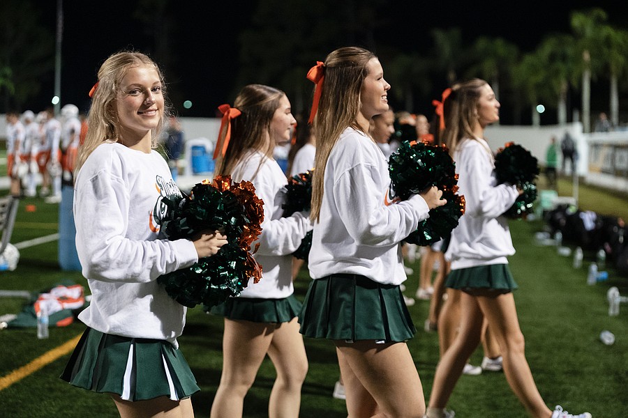 Mosley cheerleaders motivate the crowd throughout the Region 1-5A semifinal on Friday, Nov. 21 at the Daytona Stadium. Photo by Michele Meyers