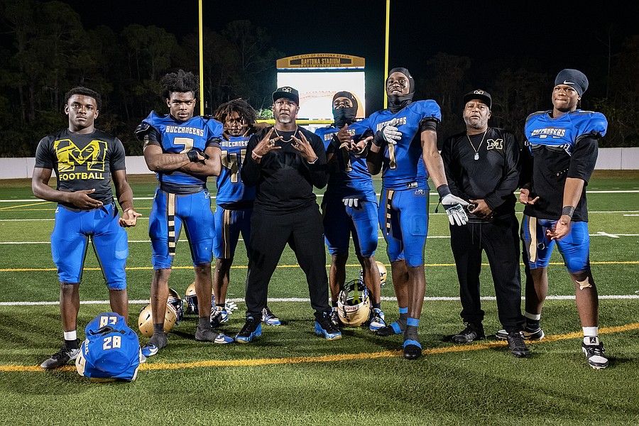 Mainland players and coaches grab some photos together after their win against Mosley in the Region 1-5A semifinal on Friday, Nov. 21 at the Daytona Stadium. Photo by Michele Meyers