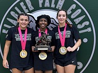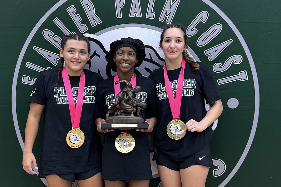 FPC champions at the Flagler Rotary Girls Wrestling Invitational: Alexa Calidonio, Joslyn Johnson and Alisha Vilar. Johnson was named the tournament's Outstanding Wrestler. Courtesy photo