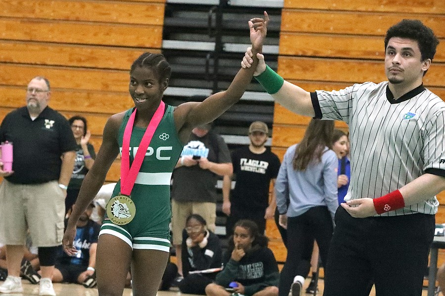 The first day of the season couldn’t have been any better. Johnson won the 105-pound weight class with four consecutive pins at the second annual Flagler Rotary Girls Wrestling Invitational on Tuesday, Nov. 25, at FPC’s main gym.