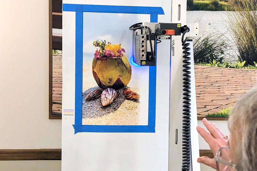 At the end of the meeting, Justin and Lindsey Hein of PixelWall Designs demonstrated the wallPen direct-to-wall printing technology that is used to print large wall murals, logos and graphics for homes and businesses.