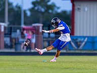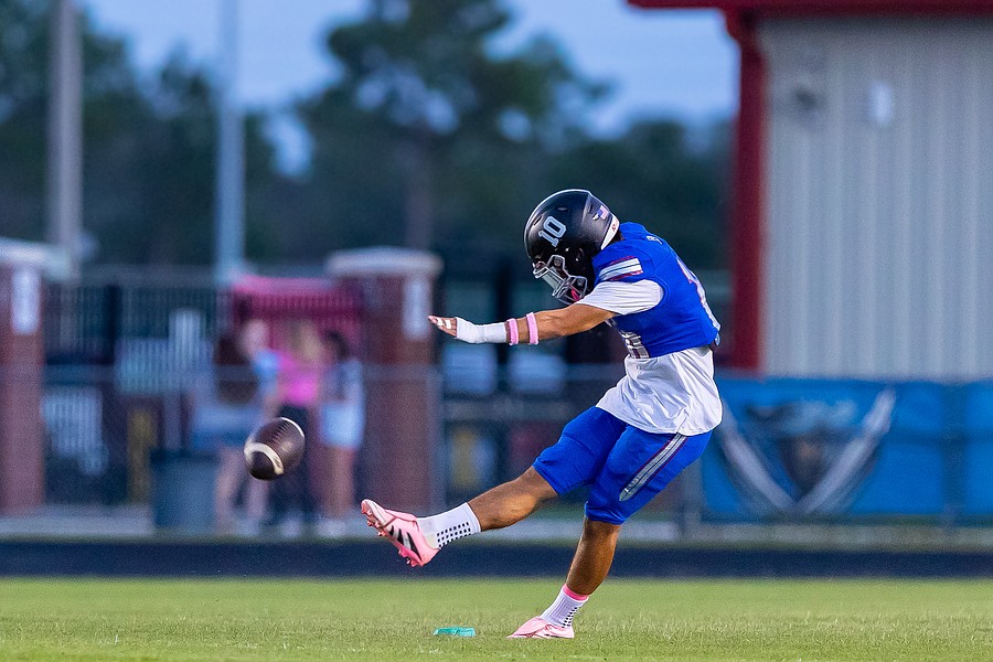 Matanzas' Alex Procek kicks off. Procek kicked a 33-yard field goal and two extra points. Photo by Keishia McLendon